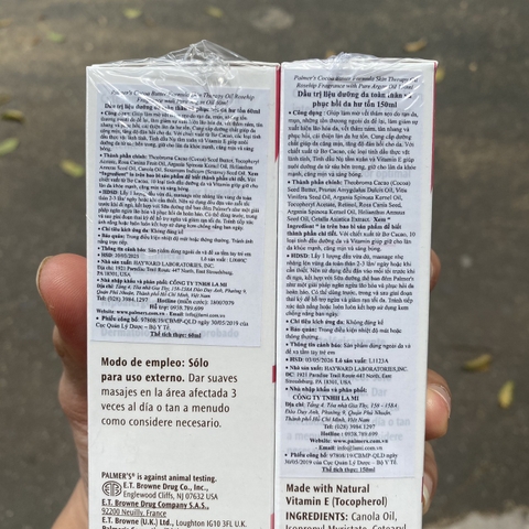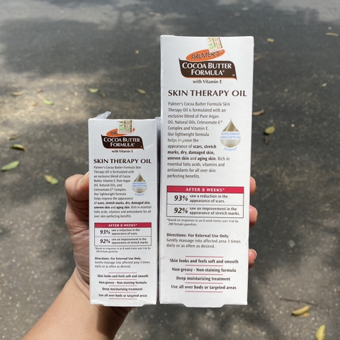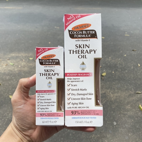 Dầu dưỡng, phục hồi da toàn thân Palmer’s Skin Therapy Oil Rosehip Fragrance with Pure Argan Oil 150ml được chiết xuất từ 10 loại tinh dầu giúp làm mờ và giảm sự xuất hiện của nếp nhăn, vết chân chim, thâm nám, tàn nhang và vết sần sùi, dưỡng da căng mịn và đàn hồi. Ngoài ra sản phẩm còn bổ sung công thức Cetesomate E - Complex chuyên biệt giúp phục hồi da hư tổn, tăng sức đề kháng chống lại các tác nhân gây hại cho da. Tuy là hỗn hợp của 10 loại tinh dầu nhưng mùi khá nhẹ, không gây kích ứng. Dầu giảm liệu dưỡng da toàn thân Palmer's có khả năng thẩm thấu nhanh, không tạo cảm giác bết dính hay gây nhờn t Palmer’s Skin Therapy Oil Rosehip Fragrance with Pure Argan Oil rên da.
