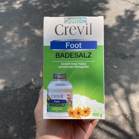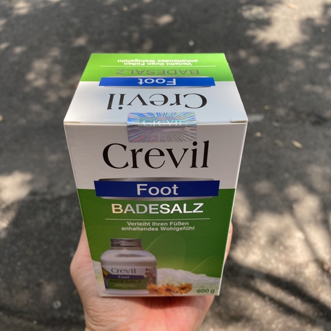 Muối Ngâm Chân Cho Người Bị Đau Nhức Xương Khớp, Mất Ngủ Crevil Foot Badesalz 600g được dùng như một phương thức làm giảm liệu để bảo vệ cơ thể và sức khoẻ. Muối khoáng ngâm chân Crevil được tinh chế từ muối khoáng biển Chết chứa nhiều khoáng chất có tác dụng tốt cho sức khoẻ. Với công thức độc đáo kết hợp các khoáng chất biển Chết và tinh dầu thơm từ cây Hương thảo, muối khoáng Crevil foot Badesalz mang lại một phương thức làm giảm liệu hiệu quả được đông y gọi là “Phương Hương Táo Thấp” để làm giảm các chứng đau nhức xương khớp, mất ngủ, các chứng phong thấp, phòng ngừa và hỗ trợ điều làm giảm nhiều chứng người bị.