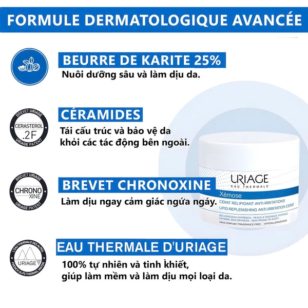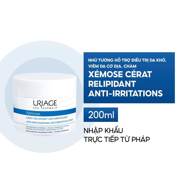 Nhũ tương làm giảm khô ngứa cho da cơ địa, chàm Uriage Xemose Cerat Relipidant Anti Irritations 200ml