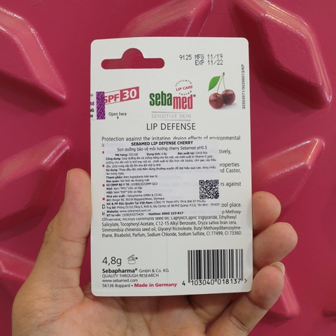 Hướng dẫn sử dụng Sebamed pH5.5 Sensitive Skin Lip Defense Cherry: